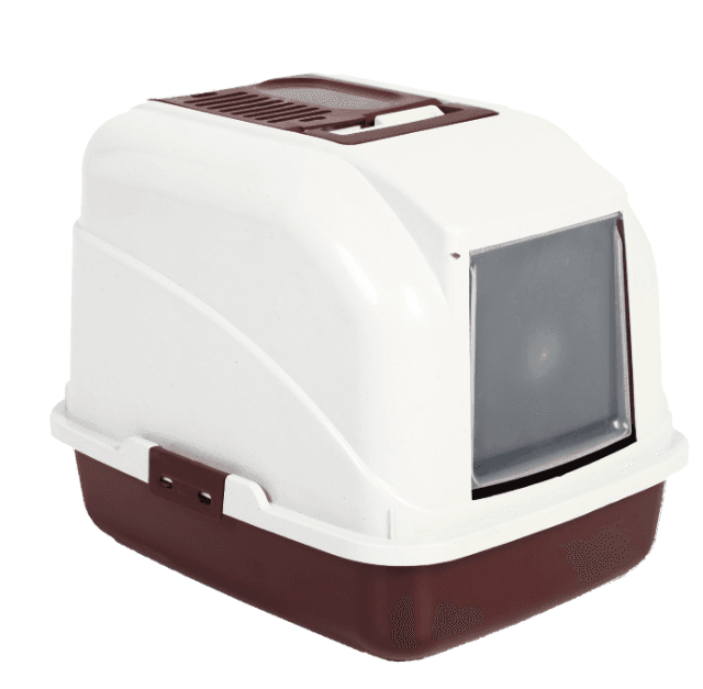 Spacious And Hygienic Litter Box With A Privacy Lid And Flap Door. Features A Top Ventilation System And Secure Side Clips For Easy Cleaning And Odor Control.